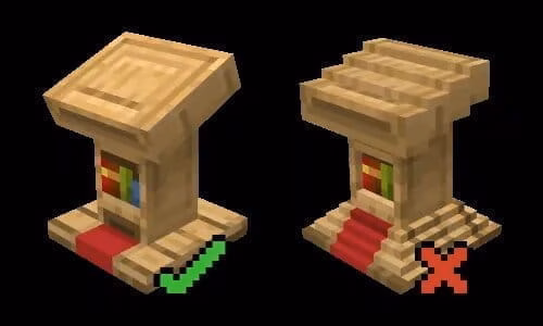 基于上面的原因,你最好避免用阶梯表现斜面和曲线,我们更建议你通过旋转元素来创建一个斜面。很多 MC 模型中都能找到旋转的元素,但这样的用法必须有理有据。举例来说,为了创造曲线而将相邻的元素旋转并不符合 MC 的美学